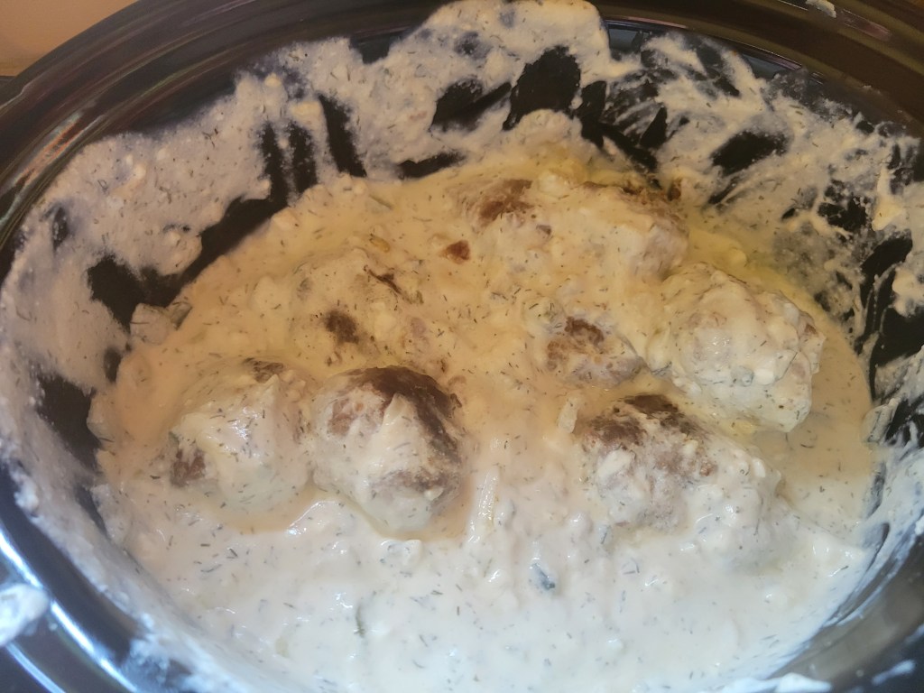 She said its Greek Meatballs, but instead of beef she used Impossible Meat with the Lamb. Then she put this white sauce on it and it looks like MILK! If I think about it, I will see if I can get you guys a recipe. She said she got most of the ingredients from Imperfect Foods, which I also though it was weird, cause they look perfect to me!