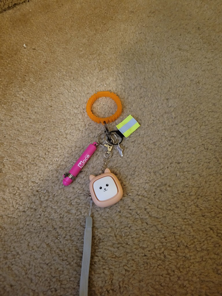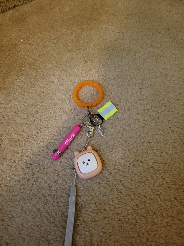 Coach Thor sneaking in…. We have our first giveaway ever!!!!! Who wants a runner safety keychain with a touch of Coach Thor (the one shown)? Safety key chain includes a purr-fect alarm with light, mace, reflective key chain with charm and a nite ize reflective band…..